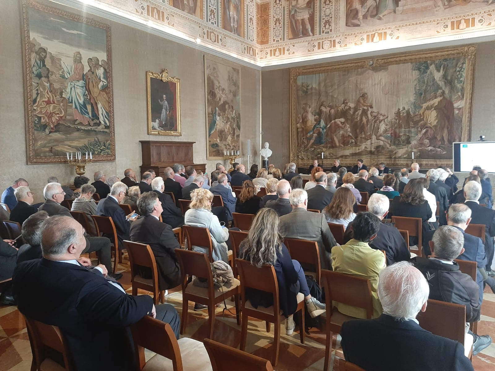 All’importante evento sono intervenuti S.E. Mons. Baldassarre REINA (Vescovo Vicegerente del Vicariato di Roma) che ha ringraziato l’Associazione OMNIA NOS per aver voluto scegliere una sede cosi prestigiosa su un tema tanto importante; inoltre, in qualità di relatori: il Prof. Antonino GIANNONE (Fellow leadership and ethics of ICELAB presso il Politecnico di Torino, già direttore generale di aziende pubbliche e private, specializzato in management in Italia, Europa, Stati Uniti e Presidente dell’Associazione Umanesimo ed Etica per la Società Digitale, il Prof. Maurizio Mensi (Docente di Diritto dell’Economia presso la Scuola Nazionale di Amministrazione; docente di Diritto dell’Informazione e della Comunicazione presso l’Università LUISS; membro del servizio Giuridico della Commissione Europea e Mons. Gianni FUSCO (Docente di Teologia Dogmatica all’Università Maria Assunta – LUMSA; Consulente ecclesiastico dell’Unione Cristiana Imprenditori Dirigenti – UCID.